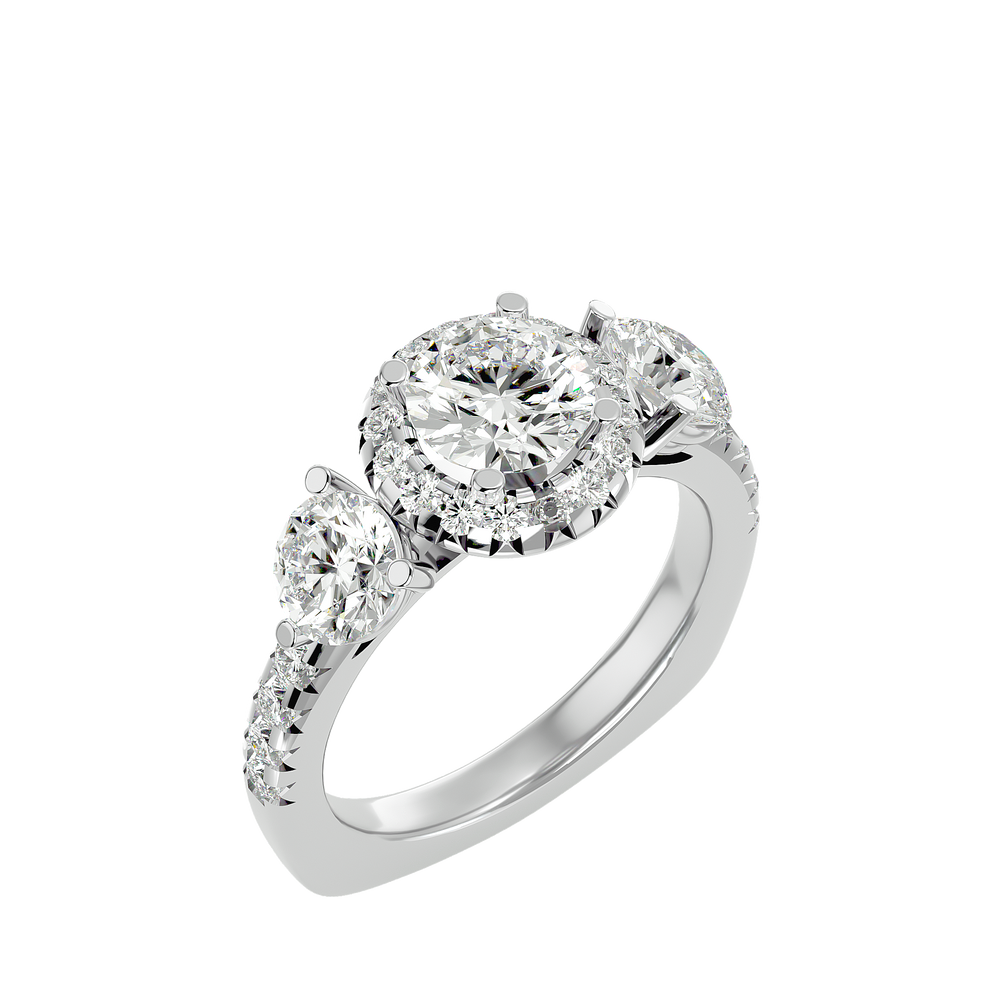 Genevieve Three Stone Ring brings a touch of luxury to your everyday attire, infusing it with creative elegance. Crafted with gold and diamonds, it's an ideal accessory for any occasion.
